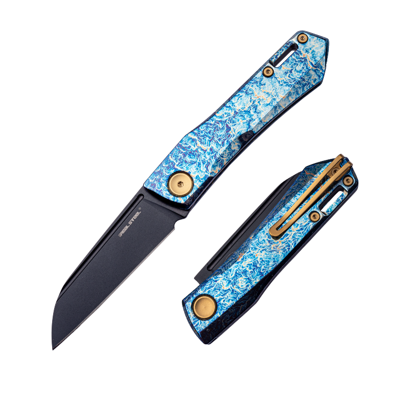 Designed by Jakub Wieczorkiewicz, the Solis Titanium belongs to the Luna, Stella, and Solis family of knives. Its sheepsfoot blade, crafted from N690 steel, excels at slicing and chopping, making it ideal for versatile tasks. The slipjoint mechanism includes a 120° half-stop for added safety, while the thumb nail opening ensures smooth operation.
