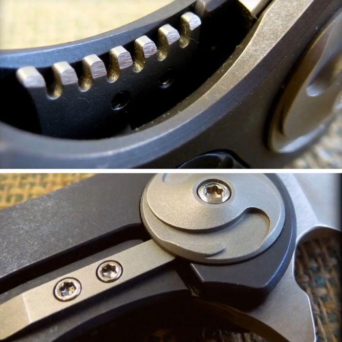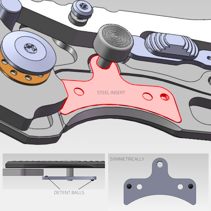 Designed by Carson Huang (2013), this feature combines intuitive operation with precision engineering. This supplemental safety mechanism for frame locks activates automatically upon opening the knife. To close the blade, slide the safety tab downward while disengaging the frame lock. A must- have for frame lock lovers with higher demands.